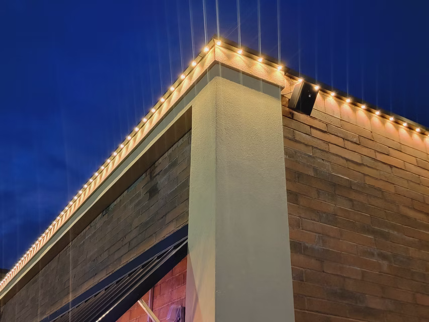 One of the biggest differences between a DIY-style light setup and a professional install is the finished appearance. A homeowner may be able to mount lights on their own, but getting clean lines, neat placement, hidden wiring, and a polished result is where experience really shows. That matters even more on visible front-facing rooflines and entry areas.